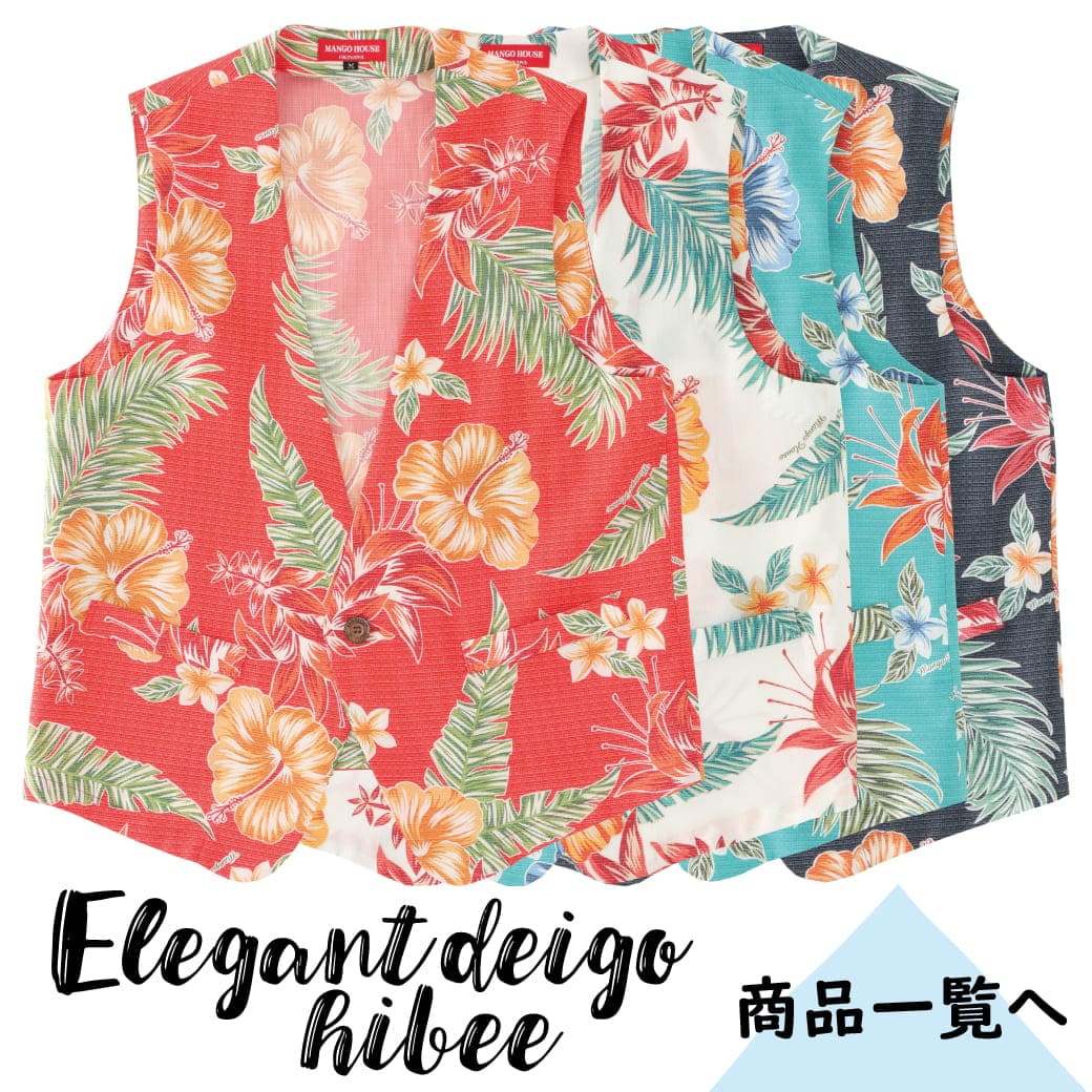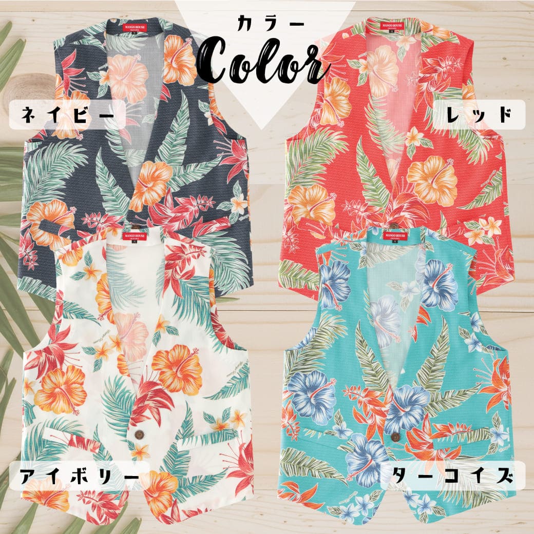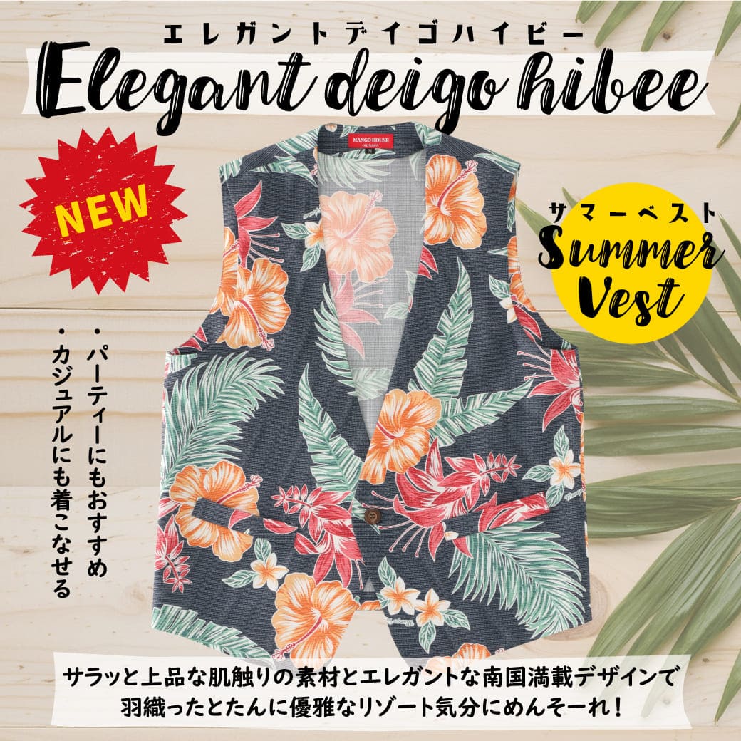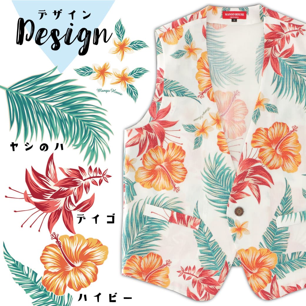 【新作商品:かりゆしウェアのベスト】沖縄を感じる、涼しいデザインのサマーベスト『商品名:エレガントデイゴハイビー』