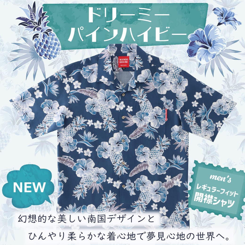 【新作紹介】涼しい素材、見た目からも涼しいデザイン『ドリーミーパインハイビー』ファミリーお揃いできます。