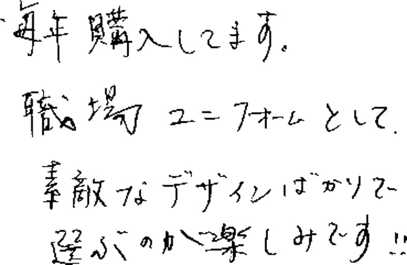 5年程前からデザインが気に入り前店舗から購入を続けている愛好者です。(今回で8着目)