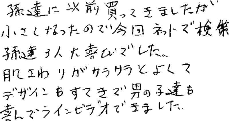 孫達に以前買ってきましたが小さくなったので今回はネットで検索孫達3人大喜びでした。