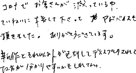 この度は、貴重なお声をいただきスタッフ一同、心より感激しております。