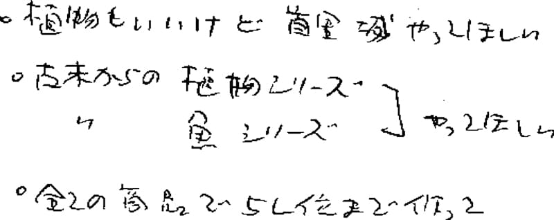 ・古来からの植物シリーズ、古来からの魚シリーズやってほしい