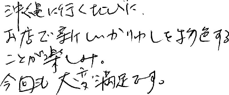 沖縄に行くたびに、お店で新しいかりゆしを物色することが楽しみ。今回も大変満足です。