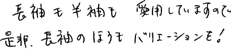 長袖も半袖も愛用していますので是非、長袖のほうもバリエーションを!