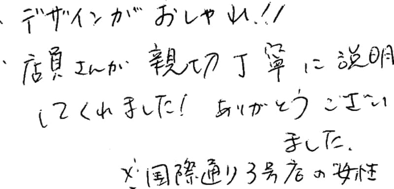 ・店員さんが親切丁寧に説明してくれました!ありがとうございました。※国際通り3号店の女性
