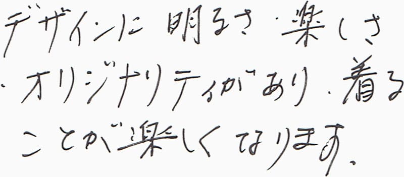 デザインに明るさ・楽しさ・オリジナリティがあり、着ることが楽しくなります。