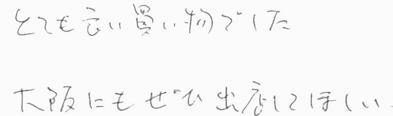 とても良い買い物でした。大阪にもぜひ出店してほしい。