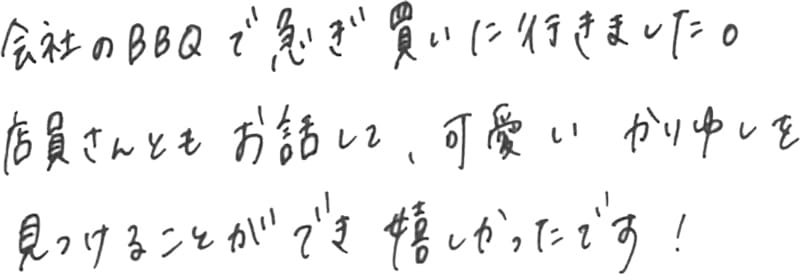 - 会社のBBQで急ぎ買いに行きました