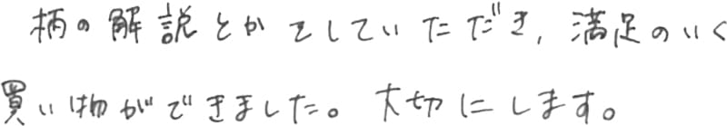 - 柄の解説とかをしていただき、満足のいく買い物ができました