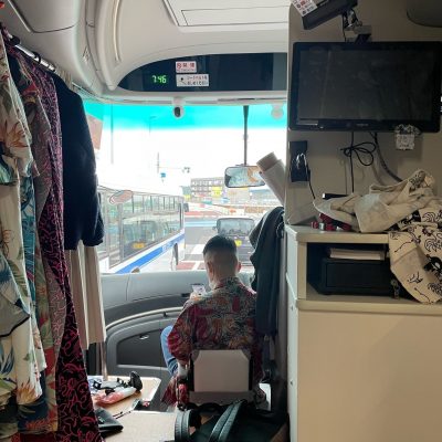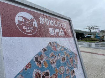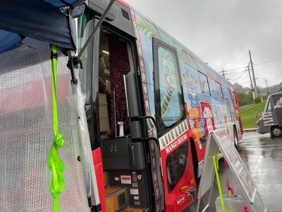 「あいにくの雨でしたが、アイランドバスに出陣しているちびっこ大好きケイスケ&カミサトにたくさん相手してもらえてちびっこたちも楽しく過ごせましたぁ~♡」