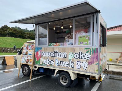 さらに「Hawaiian poke poke truck 39」さんのマグロ&サーモン コチュジャン味。Hawaiian poke poke truck 39さんとは、アイランド号初出店のときから仲良くさせて頂いていて、初出店のときにも頂いたんです。(ISLAND BUS初出店!!かりゆしウェアを乗せて大宜味村へ!(^^)!→こちら♪)