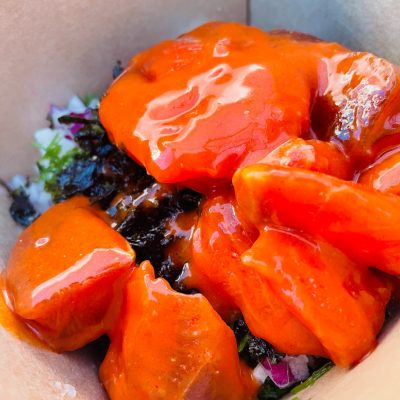 キッチンカーで頂けるクオリティとは思えないくらい肉厚なマグロ&サーモン。それが真空パックでコチュジャンソースに漬け込まれているんです。美味しい&丁寧!!迷ったときはここを選んで間違いない。