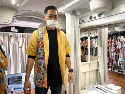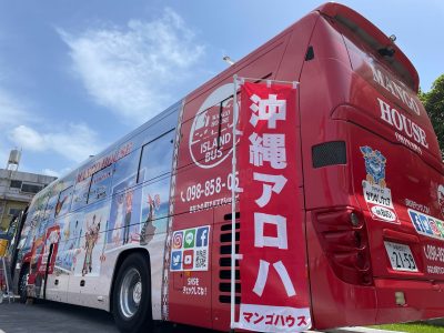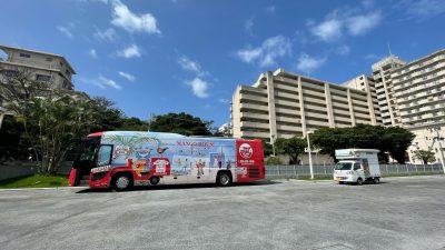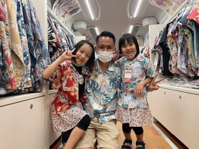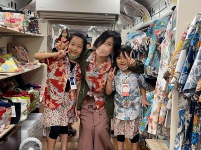 2022年4/16(土)・17(日)マンゴハウスバス アイランド号(かりゆしウェア移動販売車)那覇市のコジマ×ビックカメラ那覇店に出店してきました~!!