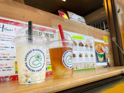 あ、「HAPPY PEARL沖縄」さーん!美味しすぎるフルーツ酢ムージーを売っているお店です。実は4/9(土)10(日)にもお会いして、そのときフルーツ酢ムージー頂いたんです。(ハピちゅらマルシェのブログはまだあげてないです。お楽しみに♡)