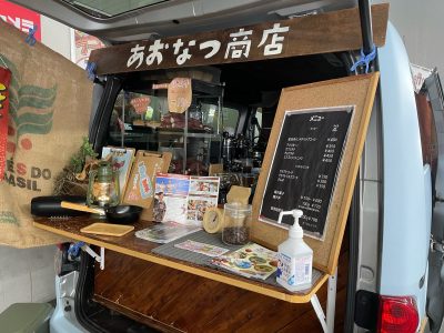 初めましての「あおなつ商店」さん。焼き芋とコーヒーのお店です。どちらもstaffきんじょうの大好物ですがアイランド号の前で焼き芋頬張るのは他スタッフに怒られそうなのでコーヒーを頂きます。ハンドドリップで手間暇かけたコーヒーが美味しい。。。