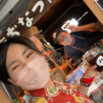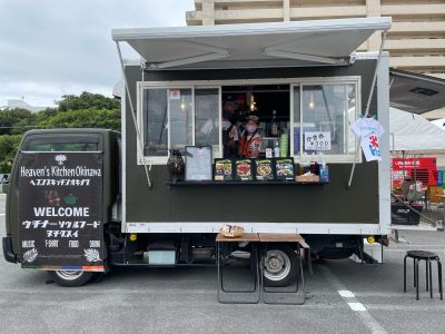 初めましての「オキナワソウルフードトラック」さん。カメラを向けたらこの笑顔♡おふたり、とっても良い方ですよきっと!!お噂はかねがね伺っておりまして、おふたりはミュージシャンなのです…♪2足のわらじ、かっこいい。