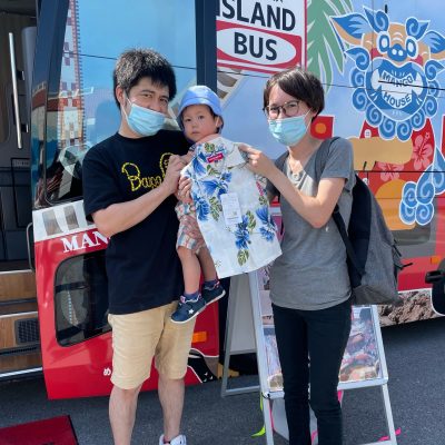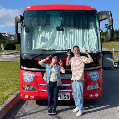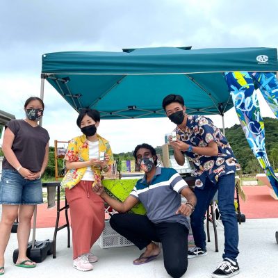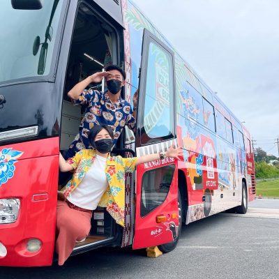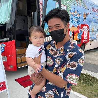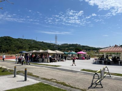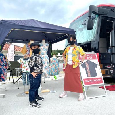 マンゴハウスバスアイランド号(かりゆしウェア移動販売車)、北中城村 中城公園で開催された『ハピちゅらマルシェ』へ出店してきました~♡2022年4月9日・10日・29日・30日に行ってきました。4月は『ハピちゅらマルシェ』いっぱいです。