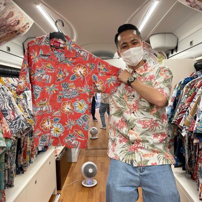 旦那様が一目惚れでかりゆしウェアを購入していかれました。「普段気に入ることがないから、気にいったときにGETするのがいいんだよ」と奥さま。光栄でございます。