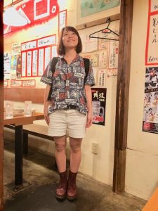 メンズを着こなす女子のアロハシャツコーデ~せんべろで着ていました~