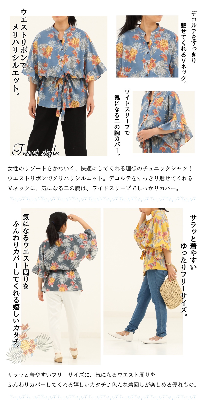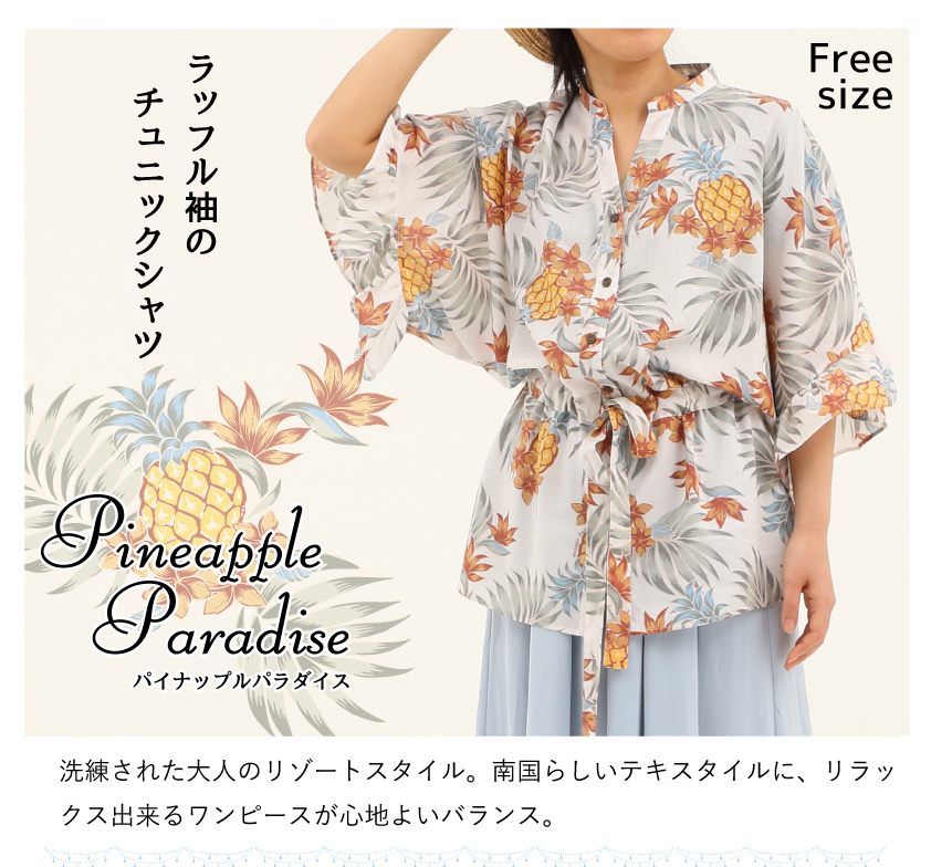 レディース新作かりゆしウェア『パイナップルパラダイス』ゆったりチュニックシャツ!