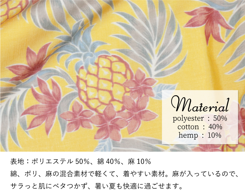 素材は、とーっても軽くて涼しい『綿・麻・ポリ』素材を使用!
