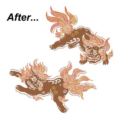 最初描くとき、やっぱり描き慣れてないので“シーサー”にすごく、てこずりました