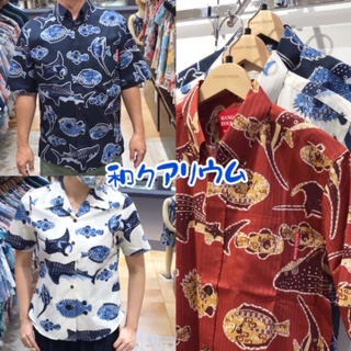 その他にも色んなお魚が描かれたお魚尽くしのシャツとなっております!