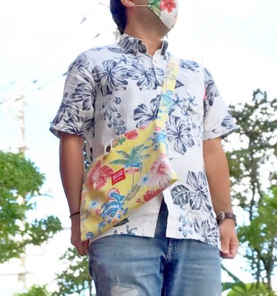 シーサー柄で沖縄らしいし、裏地が無地のリバーシブルになってて色んなシーンで活用しやすいです(^^)