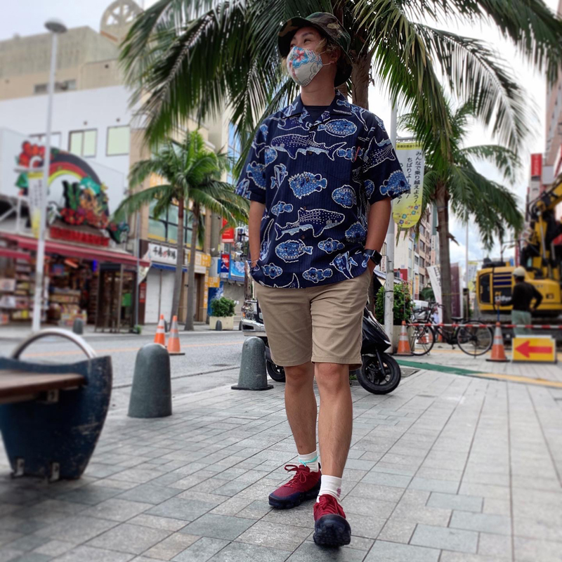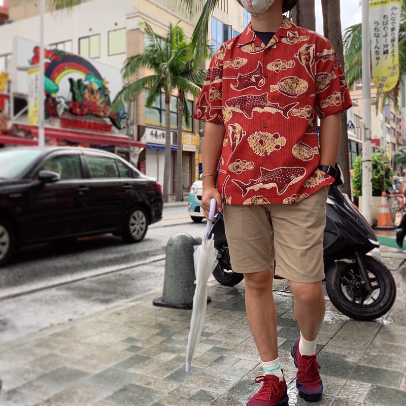 短パンと開襟シャツ(沖縄アロハシャツ)の組み合わせは相性抜群です♪【スタッフコーデ】