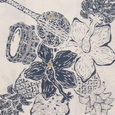 木彫り風にデザインされた沖縄の楽器や花☆飽きのこないシンプルな色使いで合わせやすさ抜群です♪♪