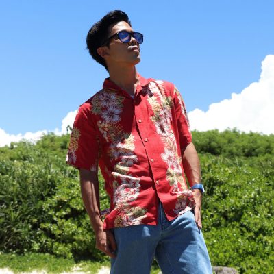 沖縄の県花であるデイゴがデザインされ、シンプルであり華やかでカッコ良い1着です。