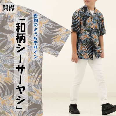 和柄シーサーヤシ メンズレギュラーフィット開襟 8,030円(税込)