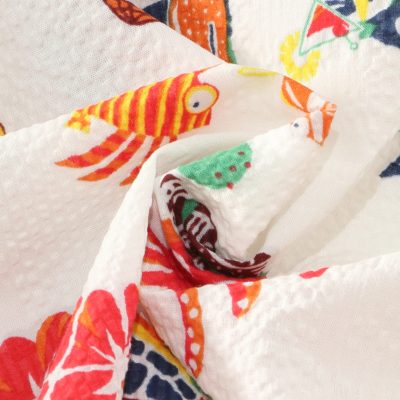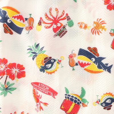 陽気なサメと楽しく乾杯!酒飲ま?アバサー、アイス大好き島ダコ、旅するウミガメ、波乗りロブスター、海を彩る熱帯魚。サッカー加工生地で涼しいよ♪