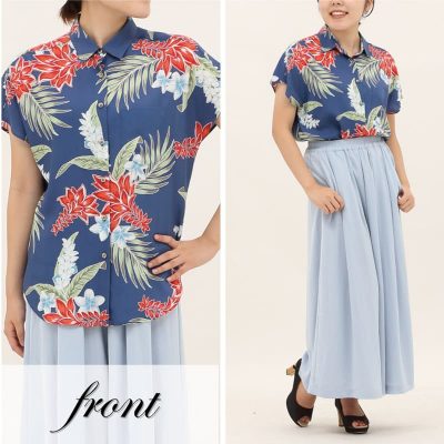ひんやりとした肌触りの生地と涼し気なデザインがマッチした沖縄のアロハシャツ(かりゆしウェア)。