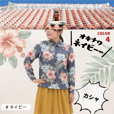 オキナワンハイビー レディース長袖かりゆしウェア(レギュラーカラー) 11,880円(税込)