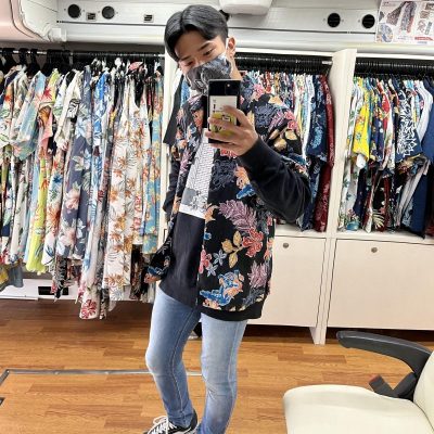 ご紹介した用に冬はスウェットやアウター、セットアップと自分お好きなコーデにワンポイントとして,かりゆしウェアを合わせることが出来て、おすすめですよ♪