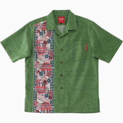 メンズ限定の【紅型守礼の門ボーダー】はお仕事用としても人気ですし、特にマンゴハウスでも数少ない“緑”は普段のお洒落着としてもおすすめです。