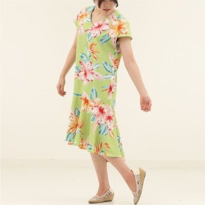 .8月 黄緑 【ロハスハイビー/ウエストフレアワンピース】