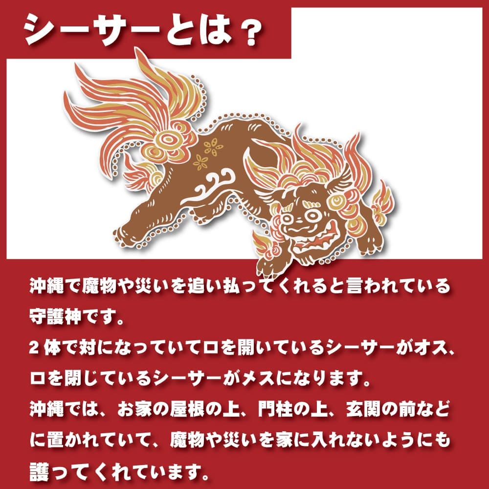 基本、2体で対になっており、口を大きく開けている方が福を招き入れてくれるシーサーで性別がオスになり、