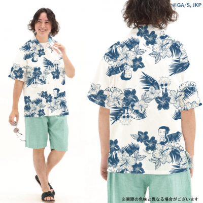 大人気 TV アニメ「呪術廻戦」×沖縄コラボかりゆしウェア「TVアニメ呪術廻戦懐玉・玉折沖縄Verちびキャラと単色ハイビスカス柄」