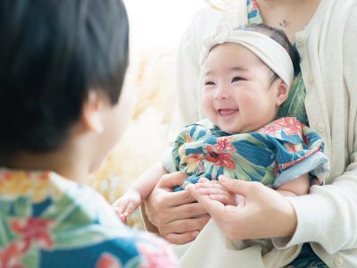 100日ということで、お宮参りの衣装やこの時期しか着れない衣装を着せたくて、スタジオでお願いすることに。