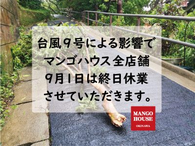 台風9号の影響によりマンゴハウス全店舗、終日休業いたします。