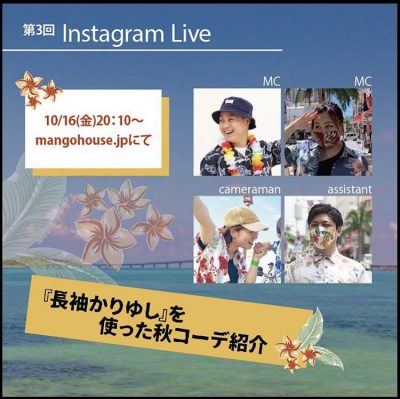 10/16(金)20:10〜マンゴハウス国際通り1号店より、第3回インスタライブ行いました