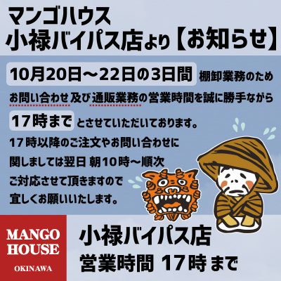 【小禄バイパス店】10月20日~22日の営業時間変更のお知らせ