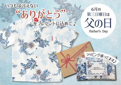 日頃照れくさくて、感謝の気持ちを伝えることができないお父さんにマンゴハウスのかりゆしウェアで感謝の気持ちを伝えてみましょう♪
