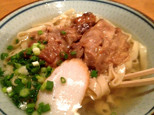 とろとろなんこつソーキと平麺にスープがからんで絶品[sc_emoji code=”目がハート”]