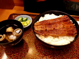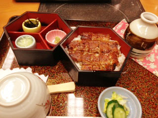 2)分けられたご飯の1/4を茶碗によそい、普通の鰻丼として食べる。
