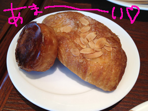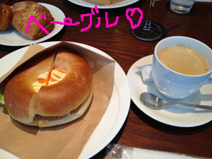 朝食メニュー¥390のクロワッサンとベーグルにしました[sc_emoji code=”てれてれ”]