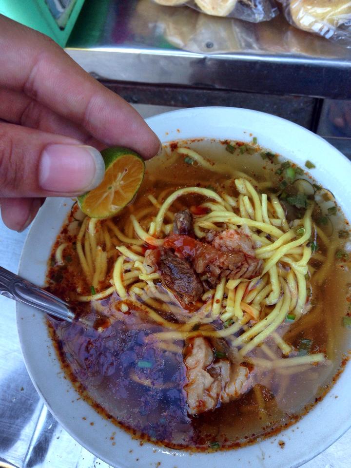 食べ方は、ライムとか七味を加えながら食べます、フィリピン人はしょっぱいが好きなのでナンプラーを入れる人が多いです。