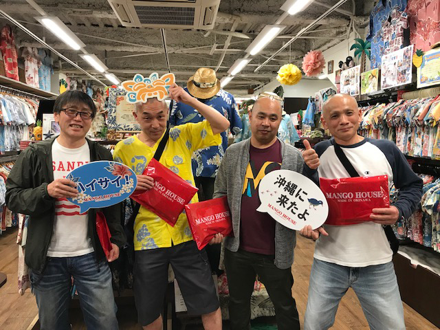 沖縄でのイベント出店のためかりゆしウェアに着替えて楽しみながら頑張ります♪🏝️🌈🌺 関東からお越し下さったお客様✈️明日のイベントに参加される為せっかくだからかりゆしウェアに着替えるとの事でここマンゴハウス国際通り2号店…